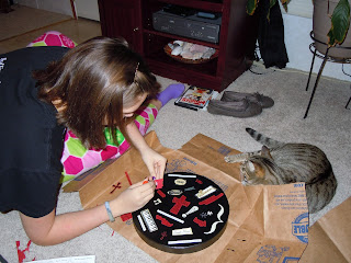 Miranda wanted to do a craft project while she was here. She had no clue what she wanted to do, but as we were walking the aisles of Hobby Lobby, it dawned on me... a keepsake box! I made something like this for Andrew years ago, and it turned out really well. She got really excited about the idea and took FOREVER picking stickers out.